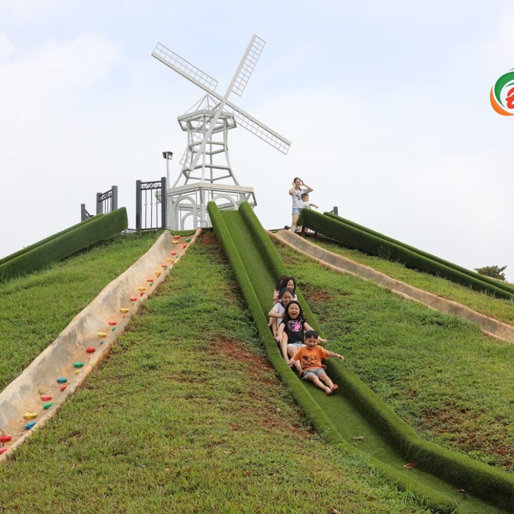 + Khu vườn thú: đến đây bạn sẽ được ngắm nhìn những loài động vật đa dạng, sinh động mà vô cùng dễ thương: bác trâu trắng hiền lành đứng đứng gật gù nhai những lá cỏ tươi tốt đầy chất dinh dưỡng, anh gà tây lù đù ục ịch đứng một chỗ mà không chịu “chạy tập thể dục”, cô cừu xinh xắn với bộ lông trắng muốt tựa bông lúc nào cũng ngoái đầu ra như trêu đùa với du khách.